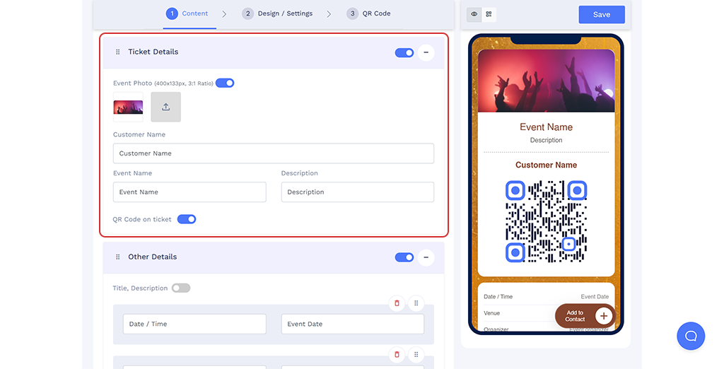 This feature allows event organizers to issue digital tickets as QR codes, which attendees can use for swift and secure entry.