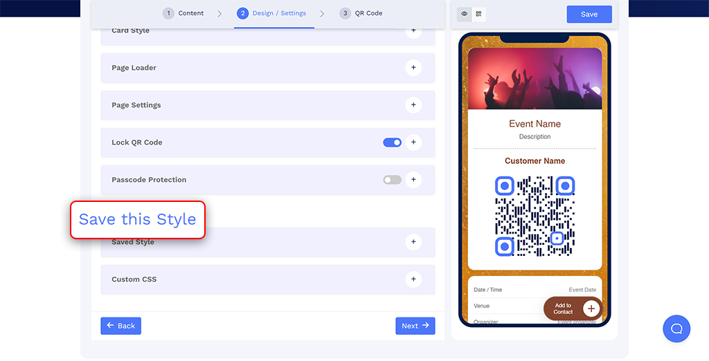 Communicate clearly how and where to use the QR code to facilitate a smooth entry process for your attendees. - Design a clean and scannable QR code.