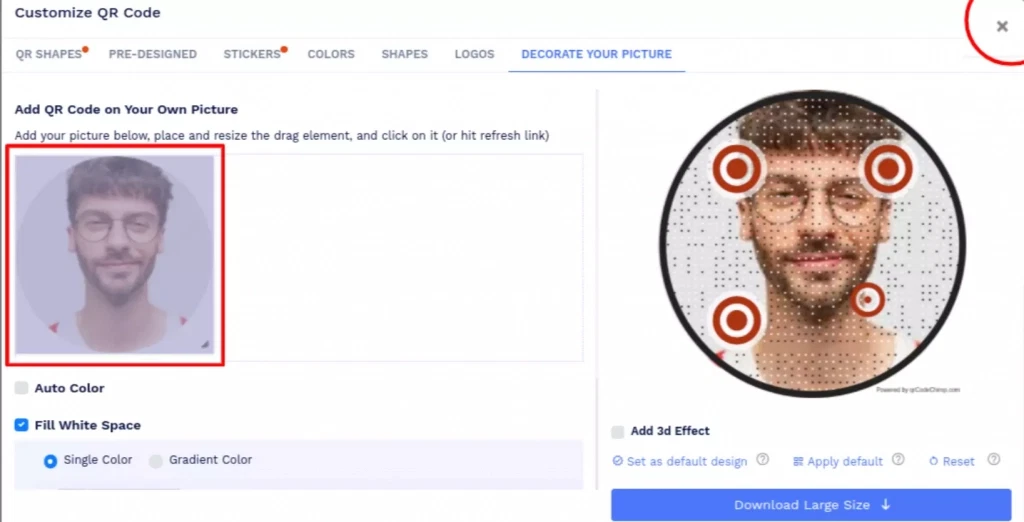 Note: Click on the 'x' icon of the 'Customize QR Code' popup to save changes.