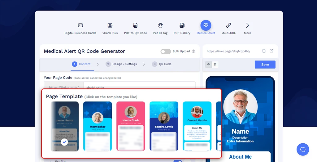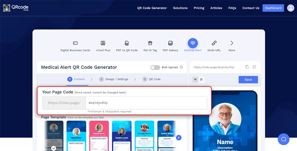 Customize the Medical ID Page URL to your preference (optional).